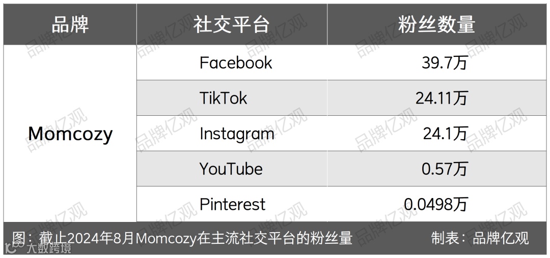 Momcozy社交媒体布局集中于Facebook、TikTok、Instagram三大平台,Facebook粉丝达39.7万,为最大互动平台;TikTok和Instagram粉丝均超24万,助力触达年轻父母群体[k]