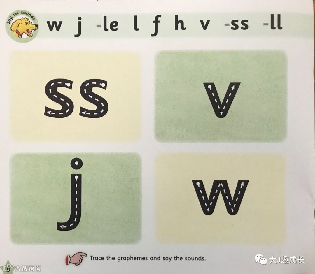 这一部分除了要求孩子能记住全部的单字母音,还能够理解并能复述故事。