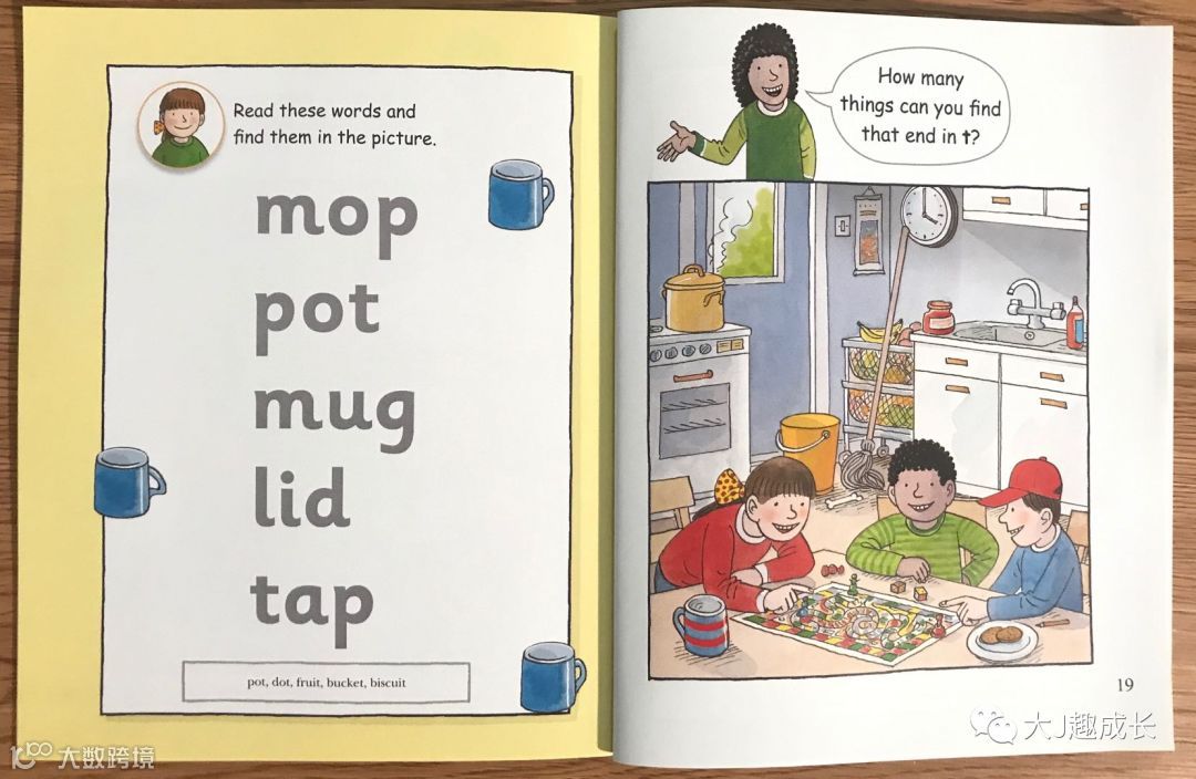 在同一本中,后面所出现的单词是前面学过的字母的组合。 孩子们可以看到不同字母的不同组合,并发现其发音规则。
