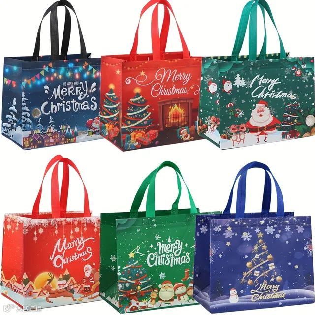 6PCS Large Christmas Tote Gift Bags With Handles For Reusable Non-woven Gift Bag Presents Big Grocery Shopping Totes Holiday Party Favor Good Bags 12.6 X 9.8 X 6.7inch