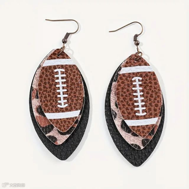 1 pair Women's Rugby Drop Earrings - Double-Sided Print, PU Leather, Sporty Style