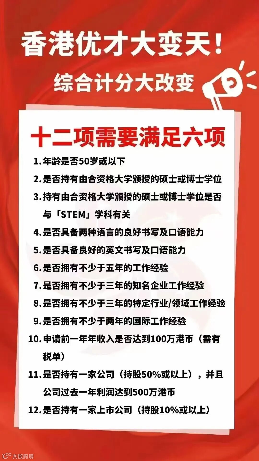 其中综合计分制取消逐项计分,此前的245分计分表撤销,变成了符合12项评核准则中的6项才可以递交申请。