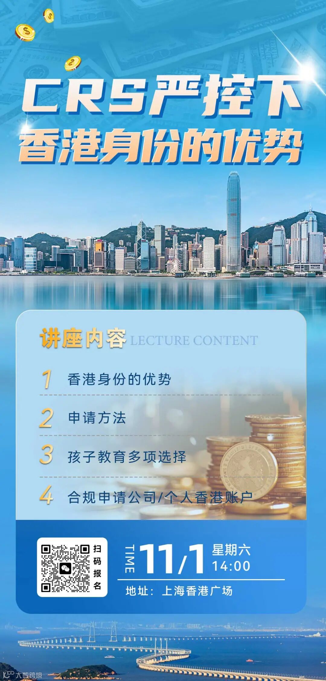 在这个全球化迅速发展的时代,了解并掌握不同身份的优势对于个人和企业发展至关重要。我们诚挚邀请您参加即将在上海香港广场举办的特别讲座,一起探讨香港身份在CRS(共同申报准则)严控下的独特优势。