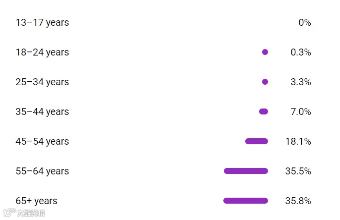 频道受众以中老年女性为主:65岁以上占35.8%,55–64岁占35.5%,45–54岁占18.1%,表明内容精准触达高消费力人群。[k]