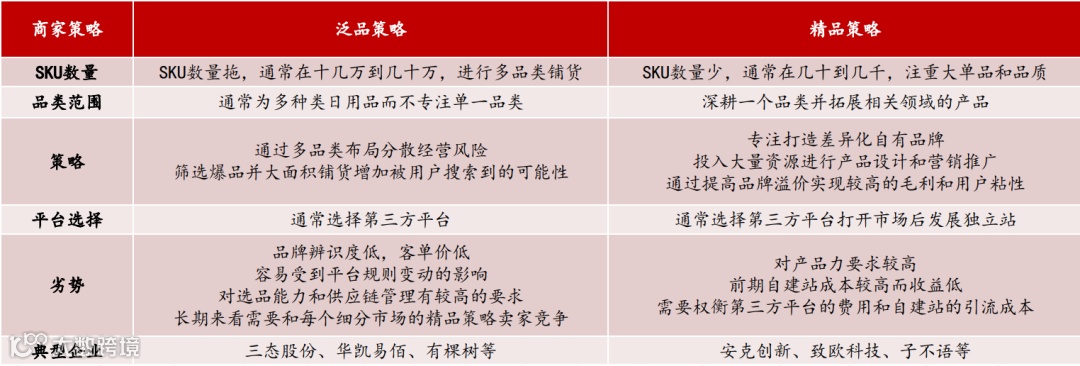 上游商家的布局策略主要分两类:一类是泛品策略,好比 “啥都卖的杂货铺”,走的是多品类铺货路子;另一类是精品策略,就像 “专注做品牌的专卖店”,主打细分领域的优质产品。
