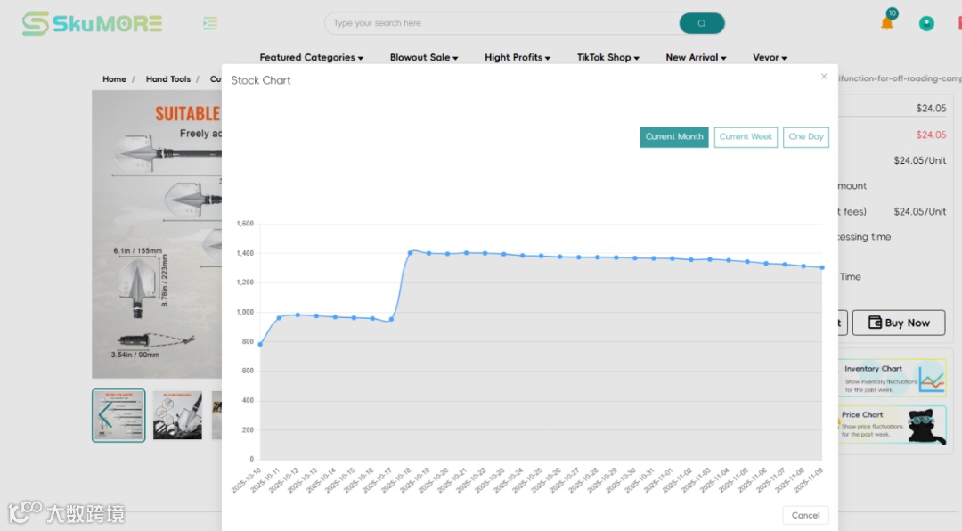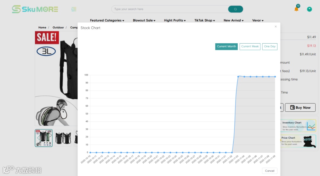 Amazon上同类商品上月销量800+,而我们平台在上个月补货后,销量也成功破百!