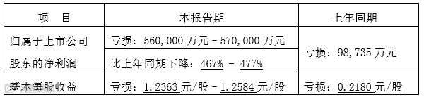 集微网消息 1月21日,华东科技发布2019年度业绩预告称,2019年公司预计盈利亏损56亿元–57亿元,上年同期亏损9.87亿元,同比下降467%-477%。