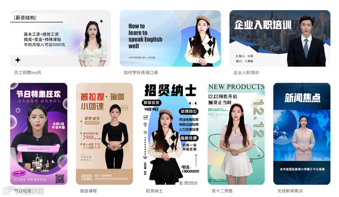 应用案例: 定制化数字人可广泛应用于以下场景: