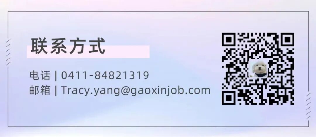 亮点:外企福利待遇,双休,五险一金,福利齐全,公司氛围极好。