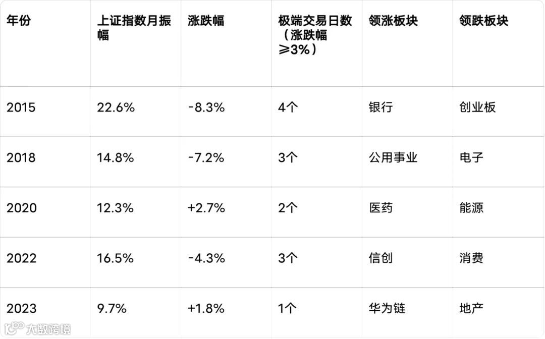 从统计可见,十月波动幅度超10%的年份占比60%,但涨跌幅并无明显趋势,体现"高波动≠必然下跌"的特征。极端交易日主要集中在政策出台、外部冲击等关键节点,如2015年10月因美联储加息预期出现3个极端交易日。