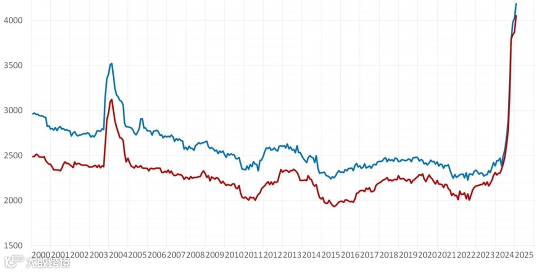 ●2025年3月:均价首破4000日元(约合人民币192元),同比涨幅达99.3%。