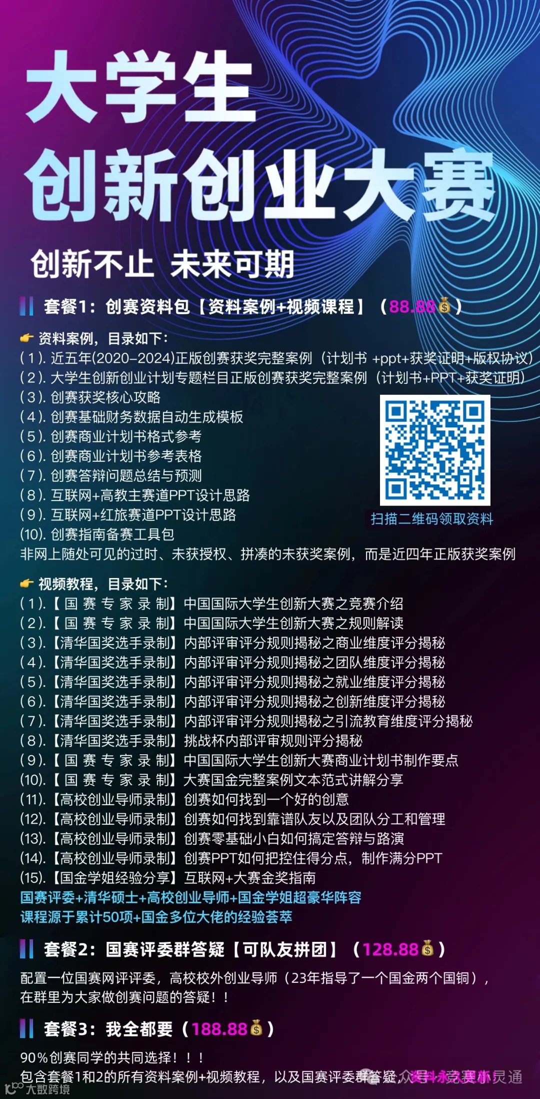 获取三创赛、互联网+大赛、挑战杯、近五年省国奖案例⬇️扫码下单
