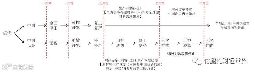 根据主要矛盾的迁移,我们可以把今年以及明年分成四段:1、疫情爆发,经济纾困;2、货币政策回归正常化及金融防风险;3、货币政策正常化;4、通胀;