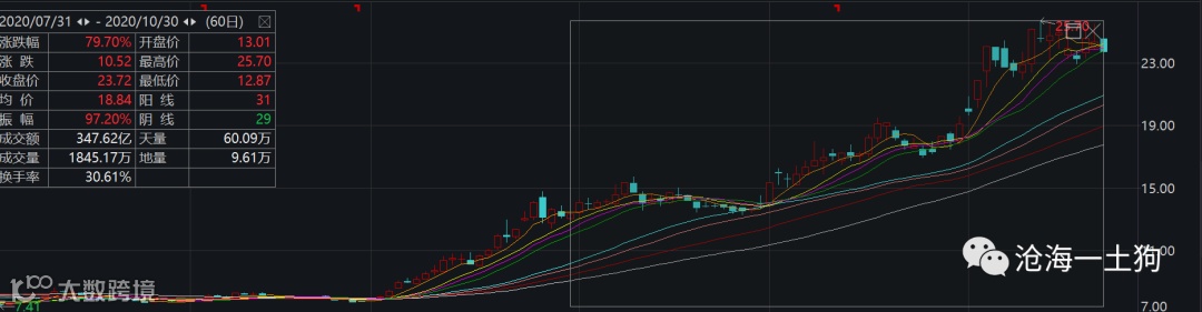 在60个交易日里,有31根阳线29根阴线,但是,却累计上涨了接近80%。这个事实是很反直觉的。
