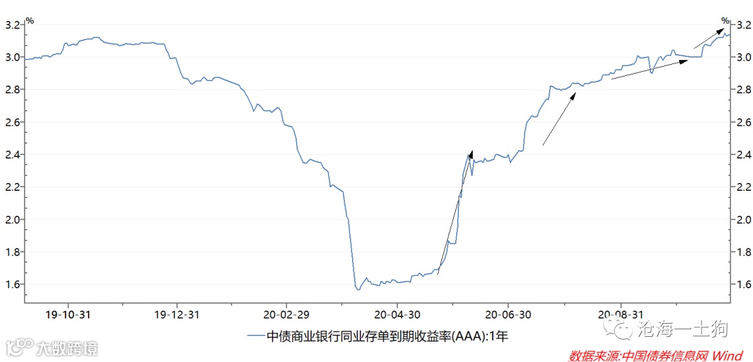 也就是说,随着冲击的消失,一年存单利率还是会回到3.0%附近的。