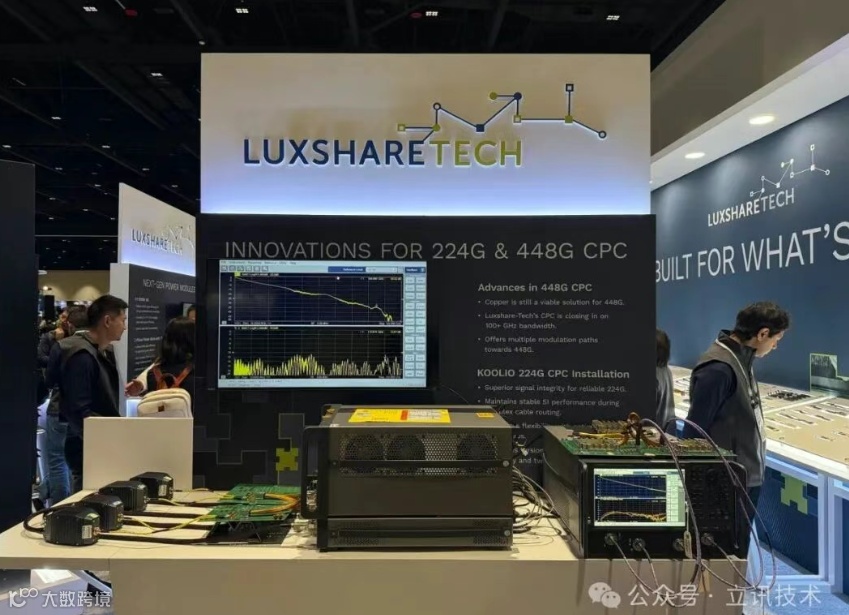 448G 技术突破:在OCP 2025上,立讯展示了448G的最新技术 。该技术的传输频率高达106GHz,远超行业定义的80GHz标准 引起行业极大反响,并获得了多个核心客户的关注和项目接洽 。