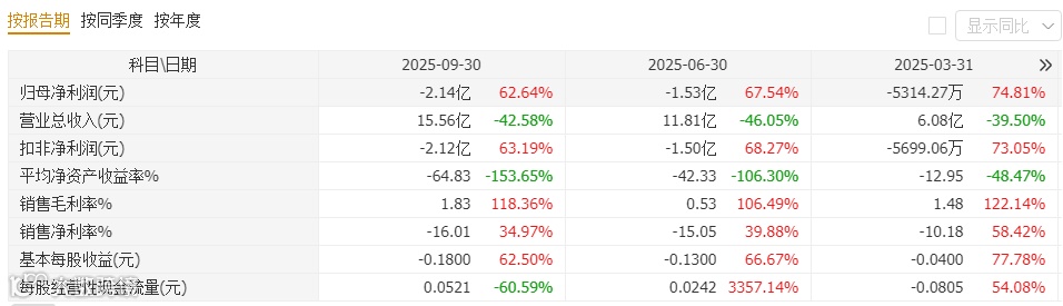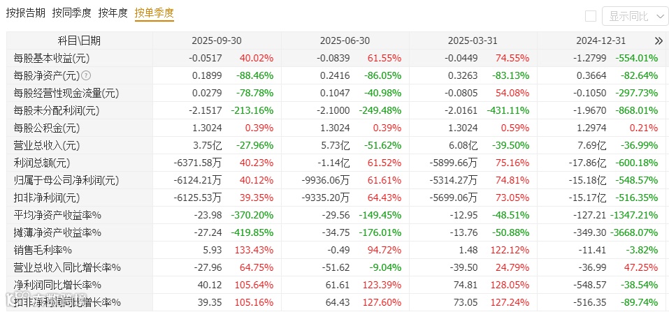 持续亏损风险:尽管亏损幅度同比大幅收窄,但截至2025年三季度,公司仍录得-2.14亿元的归母净利润。连续多年亏损不仅消耗公司资本金,也可能影响投资者信心和融资能力。如果行业环境未能及时改善,持续亏损可能导致公司财务状况进一步恶化。