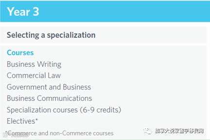 第三年:选择专业方向,主要学习已选领域专业课(上述十个方向)及商业写作、商法等课程。