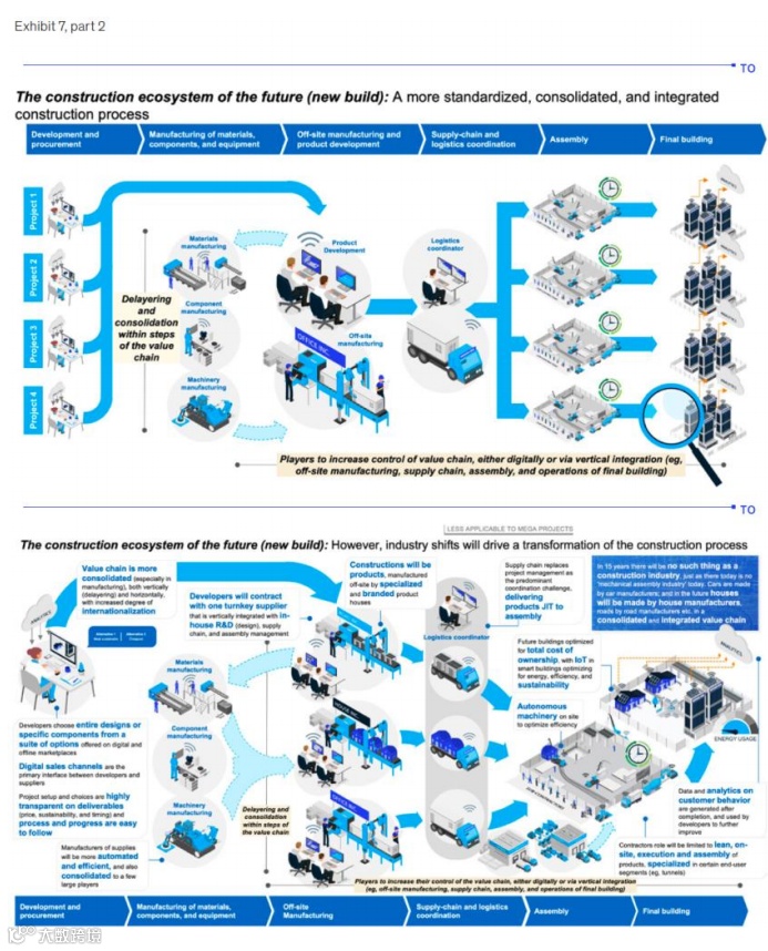 ——投资者对于其投资领域的变革要有洞察力,将有大量的机会产生。政策制定者应帮助建筑行业提高生产力,并提供更好的住房和基础设施。如果业主促成这种变革,他们将以更低的成本获得更好的建筑。