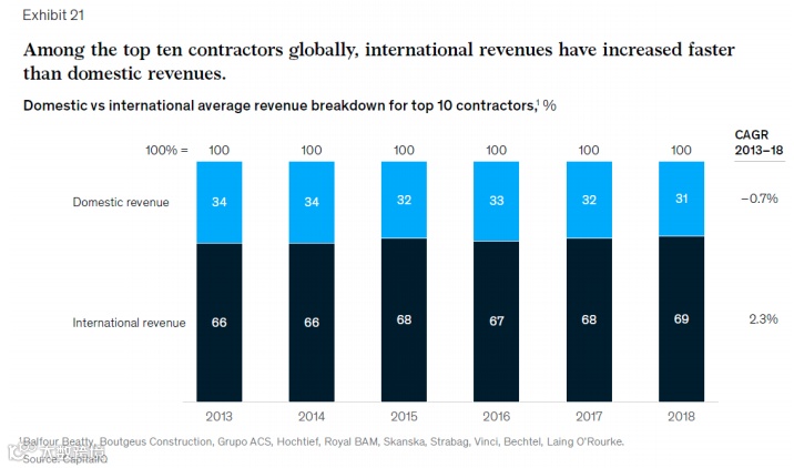 国际化。更高的标准化将降低跨地区运营的障碍。随着规模对于获取竞争优势变得越来越重要,参与者将增加其全球足迹,既包括基础设施等高价值、小批量项目,也包括全球需求的、可复制的产品。但新冠疫情可能会减缓这种发展。
