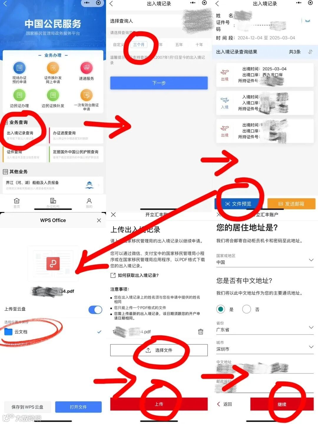 3. 上传出入境记录:在微信或支付宝“移民局12367”小程序中,找到“出入境记录”,选择包含开户当天入境记录的3个月内记录,下载后发送至个人邮箱,再返回APP上传该记录。
