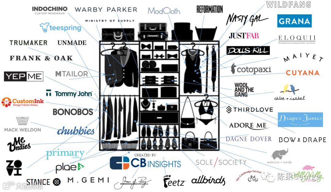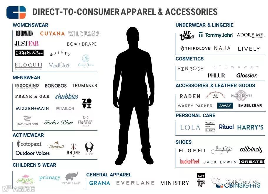 在线品牌商以线上渠道,向消费者直接销售自行设计的服装、配饰等。2016年7月,联合利华以10亿美元收购剃须刀的线上直销品牌Dollar Shave Club引起关注,更多的创业公司希望成为下一个DSC。类似的高估值品牌还包括:线上眼镜销售商Warby Parker,家庭护理产品公司The Honest Company,DSC竞争对手Harry's,定制男装Indochino等。
