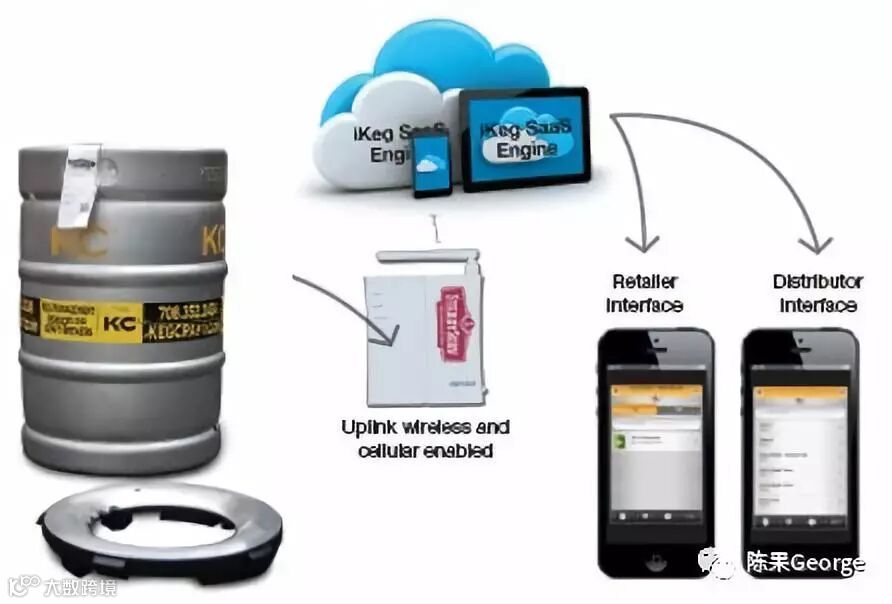 酒吧技术-为酒吧和餐馆带来大数据和线上运营功能。SteadyServe Technologies用物联网技术来跟踪桶中的啤酒水平,并建立供应链管理(下图);SevenFifty Technologies为酒吧和餐馆提供与酒类分销商联系的交易平台。