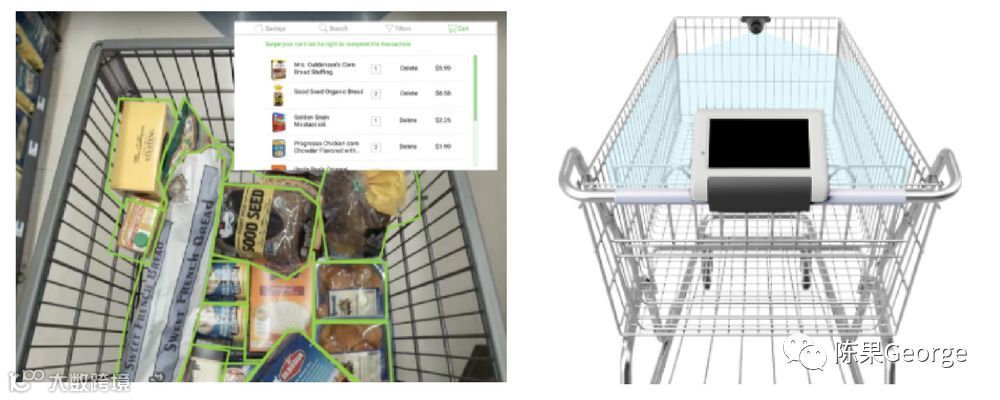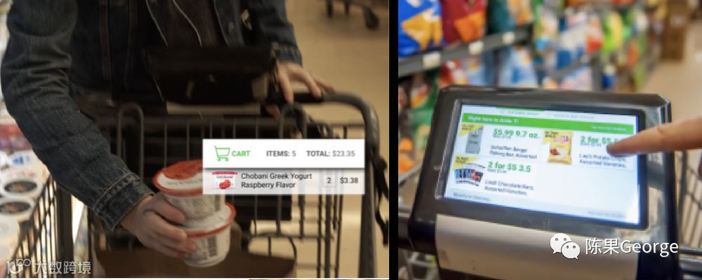 购物车技术- 为购物车装备新的数字化技术。例如,Focal Systems为传统购物车配备平板电脑,当购物车在商店中移动时,平板电脑可以使用机器视觉来监控货架,并且向购物者显示数字广告。