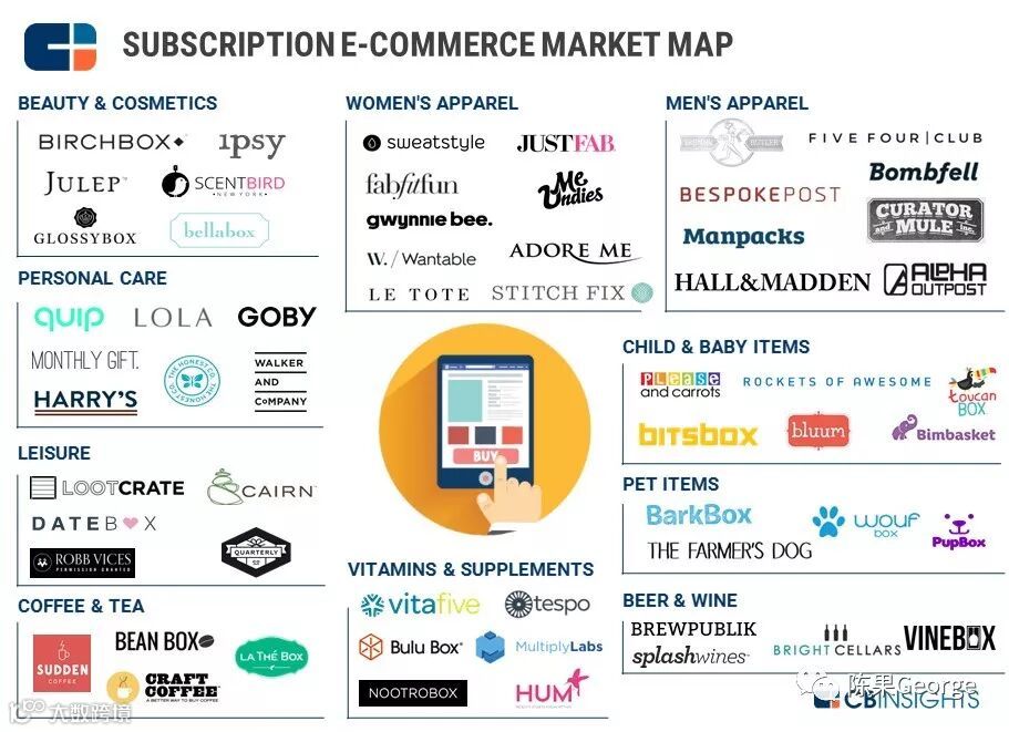 这类公司一般是自有品牌,也有集合其他品牌的订阅箱。除此之外,还有做食品订购的Blue Apron,以及订购服务或体验的Classpass等。
