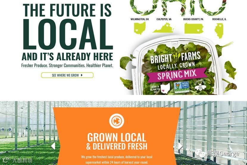商店花园– 例如,BrightFarms在,在杂货店和餐馆附近设立水培农场,出售优质、本地化的农产品。