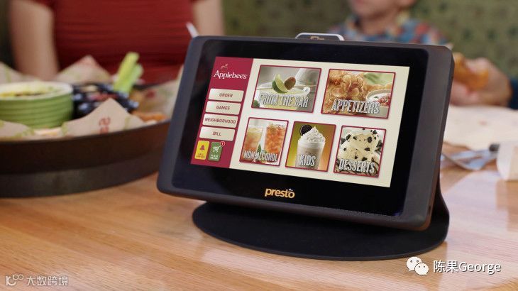 桌面设备- E la Carte公司的Presto点餐系统,提供交互式平板电脑,让客人浏览数字化菜单,通过触摸屏下单并直接支付。