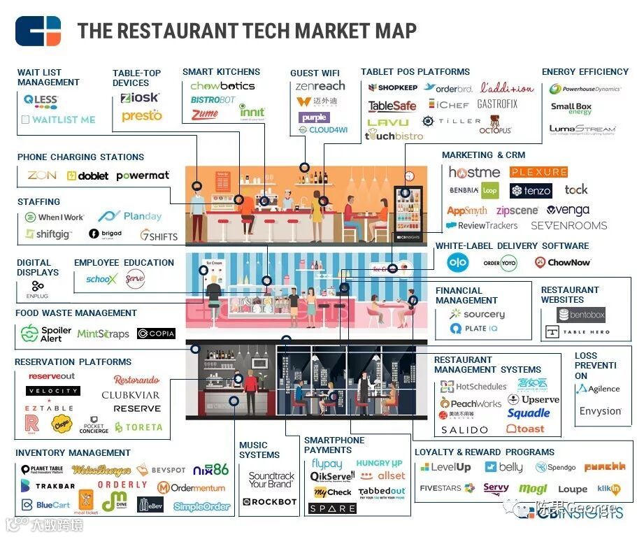 近年来这个行业也发生了不少大型并购,例如Yelp收购了座位管理软件Nowait,Subway收购移动餐厅支付平台Avanti Commerce,一家私募股权公司以5.8亿美元收购了基于iPad的餐饮POS软件Revel Systems。