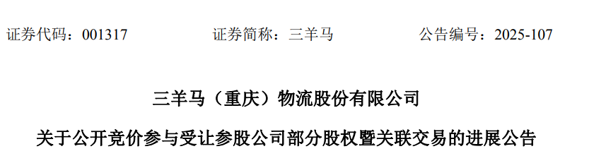 11月12日,三羊马(001317.SZ)宣布,通过公开竞价方式以634.67万元受让重庆国际物流枢纽园区建设有限责任公司持有的重庆长嘉纵横私募股权投资基金管理有限公司27.2%股权。交易完成后,公司持股比例将从1.6%提升至28.8%。标的公司具有较强投资管理能力,预计可为公司带来较好投资收益。本次交易不会对公司财务状况及主营业务造成重大不利影响。