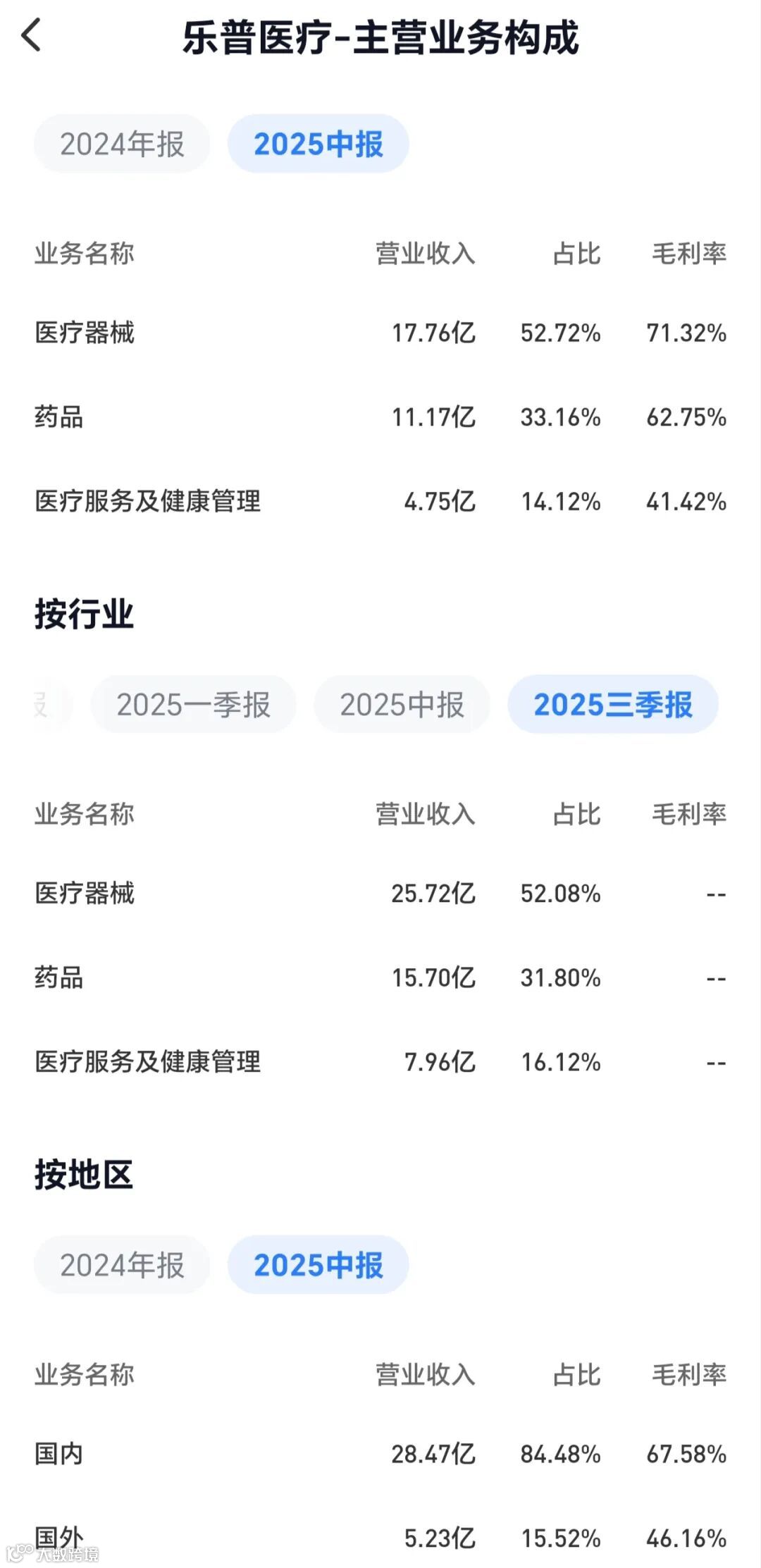 - 医疗器械:收入25.72亿元(占比52.08%),同比增长29.3%,核心是: