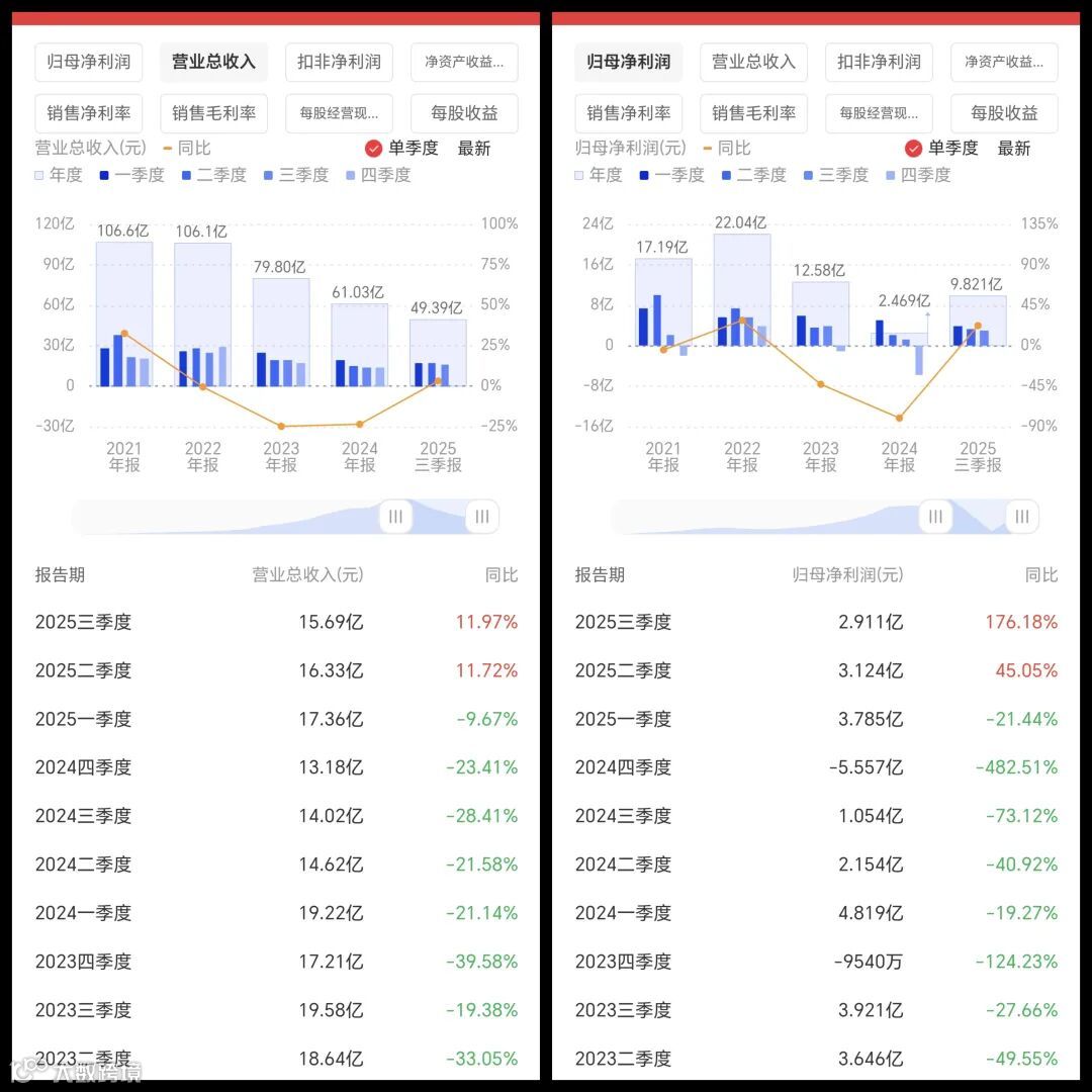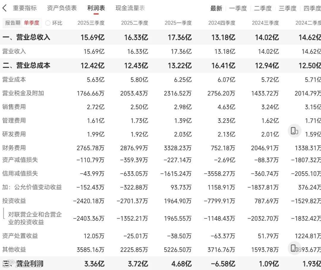 - 2025Q3:营收15.69亿元(同比+11.97%),净利润2.911亿元(同比+176.18%)。