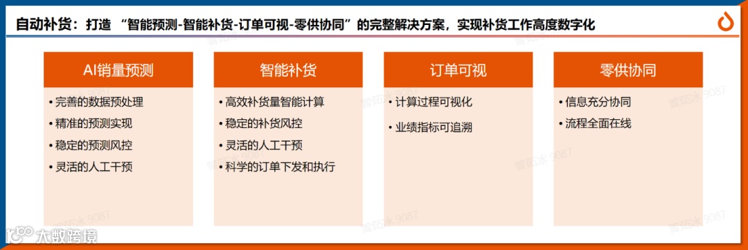 以多点DMALL补货领域的数字化赋能为例,其基于AI销量预测的自动补货系统,打造出 “智能预测—智能补货—订单可视—零供协同”的完整解决方案。