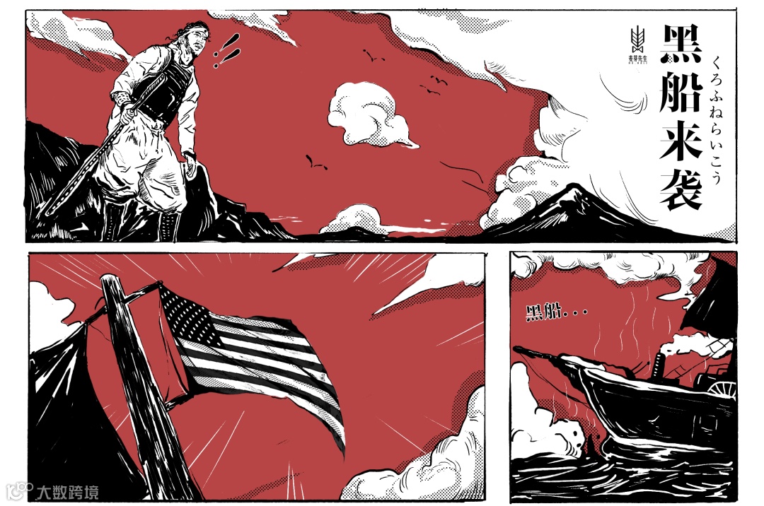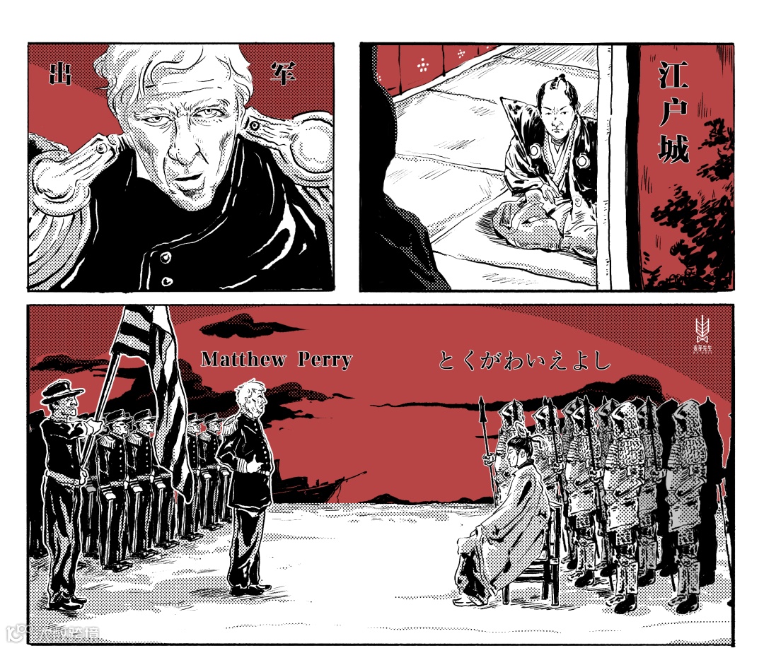 美国政府命令海军准将马休·佩里(Matthew Calbraith Perry),率领舰队驶入神奈川县三浦湾,强行要求与日本敲定贸易协议。