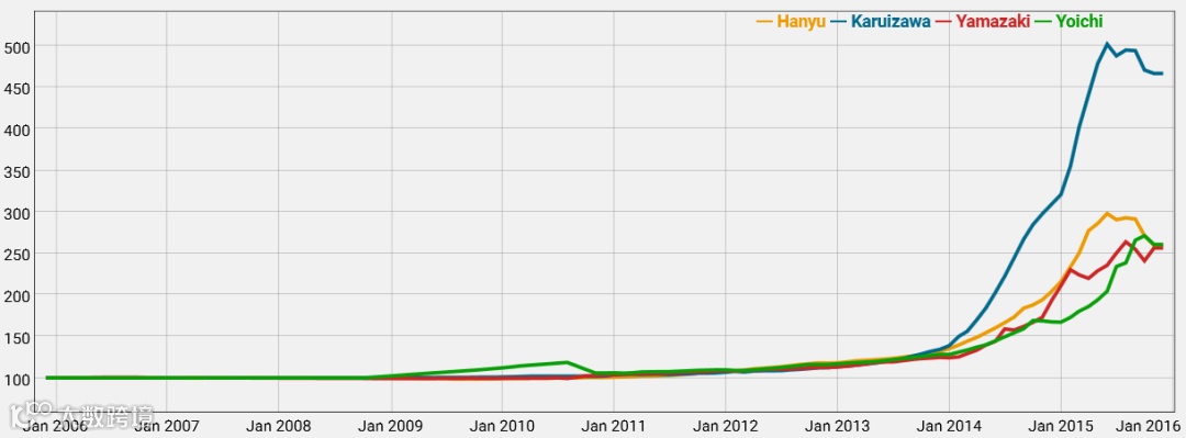 从这个维度上看,日本威士忌虽然已经在国际奖项中得到了业界认可,独一无二的“日式风格”也正在全球范围内发酵。但同时,“一夜春风来,万树梨花开”的剧情显然出乎了所有人预料。