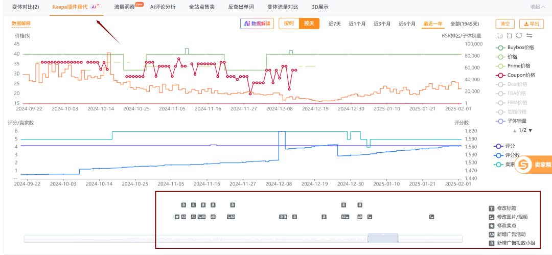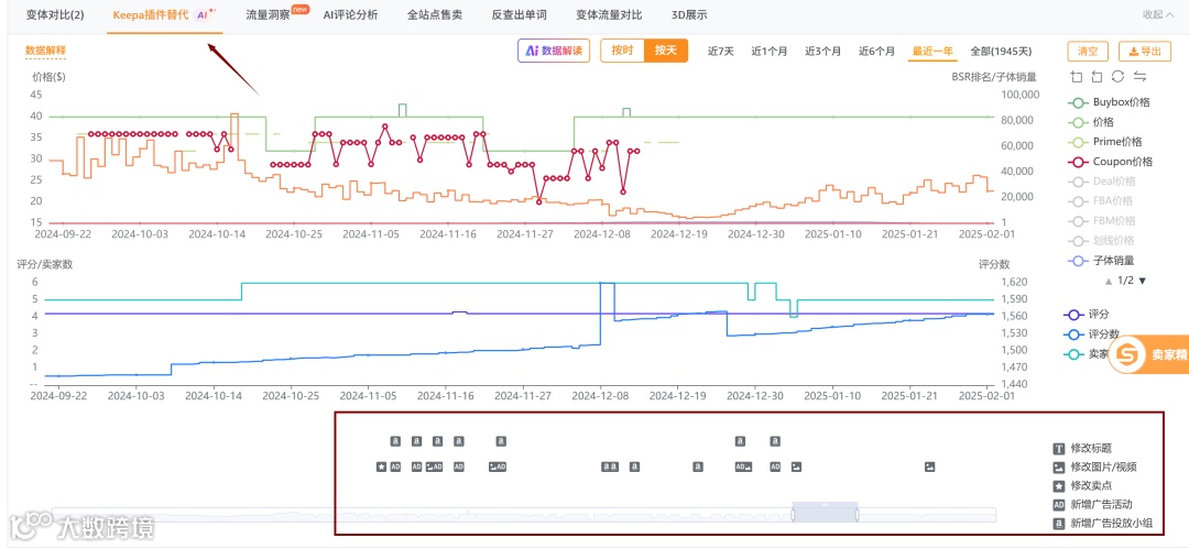 可以使用卖家精灵的插件和网页版结合去调研历史数据