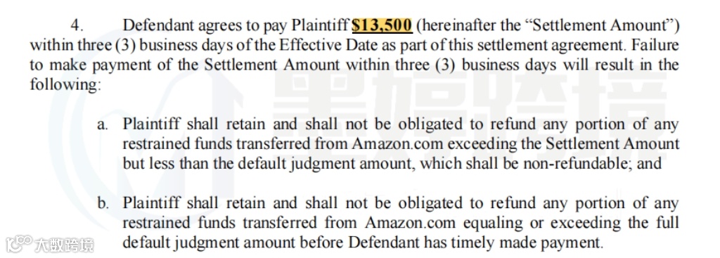 本案首轮报价高达50000美金。经墨婷律师多轮谈判,和解金降至30000美金,最终在11月13日以13500美金达成和解,我们专业、高效,以最快的速度最大程度上降低您的处理成本。