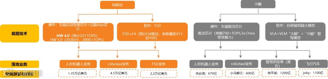 小鹏是最像特斯拉的中国新势力:基于自研的车端图灵芯片(单颗700+TOPS算力,单车3颗对应2000+Tops算力)和自研VLA+VLM的大脑+小脑智驾大模型,实现了AI业务底层技术闭环。并将在1年内实现车端&人形机器人&飞行汽车业务的全面拓展和闭环,形成类特斯拉模式下的底层技术+应用端的全面对标。