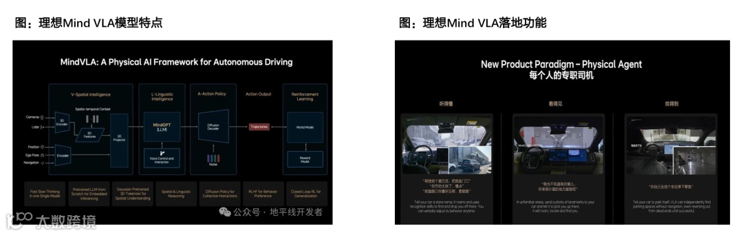具身智能:以智驾为载体,加速VLA落地。3月18日,理想在英伟达GTC大会上首次公开其VLA(视觉、语言、动作大模型),将VLM时代独立于端到端的VLM系统(基于千问开源模型训练)直接融入到VLA时代的端到端中。新架构能够实现实时自主识别星巴克等商店招牌或陌生建筑信息,从而定位行驶目的地。并且更好地理解人类语言指示,例如加减速、中途切换终点而不退出智驾。