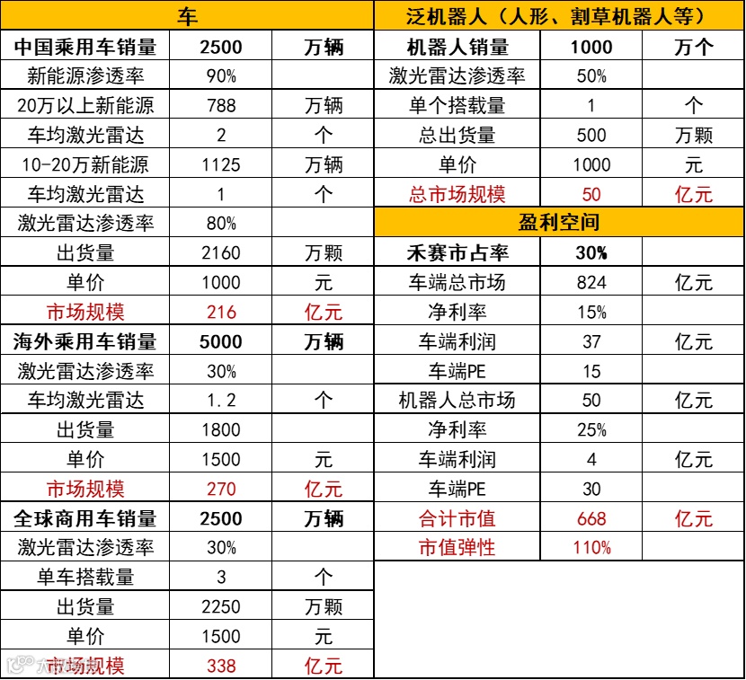 泛机器人:割草机器人优先放量,中期预计总出货量250w,对应50亿元市场规模。净利率优于车端,按25%计算;