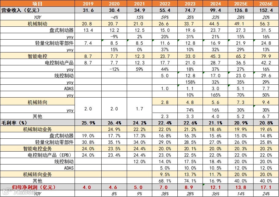 25年4月推出线控制动EMB产品,可复用自身成熟电机、传动产品,已获广汽定点。中期看,线控产品利润有望翻倍。