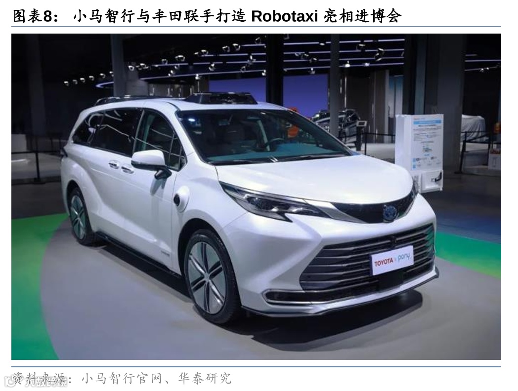 小马智行、OEM和出行平台,形成Robotaxi合作伙伴生态圈。鉴于全面覆盖价值链的每一个环节有一定难度,公司需要与多个合作伙伴建立长期的合作关系。在供应端,公司的主要合作伙伴是主机厂,其中最重要的合作伙伴是丰田。丰田也是公司目前最大的外部投资人,于2020年投资了4亿美元。因此,小马智行车辆的主力车型是丰田雷克萨斯。公司和丰田合作打造的第二代车型是基于塞那SIENNA,并进行了专门的定制,配备了完整的冗余系统。同时,公司也与上汽、广汽、一汽进行了深度合作。从出行平台角度看,公司与广汽的合作让公司与如祺平台得以绑定。在广州,乘客可通过如祺平台打到小马智行的Robotaxi。
