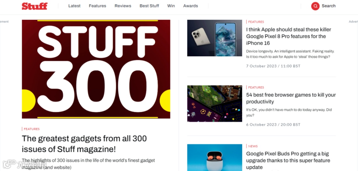 Stuff TV是一个流量比较大的测评网站,产品类型主要是科技类居多,其次是日常用品。网站首页分为最新、特色、产品种草、年度产品等引导性栏目。