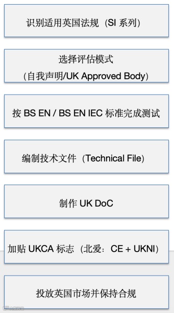 UKCA 认证流程与 CE 类似,包括: