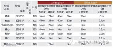 单面编织物在编织工艺含有收放针条件下,通过创新技术的应用,得出部分编织密度数据对比: