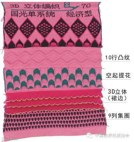 在无沉降片机型的电脑横机上,采用压脚技术编织物实例