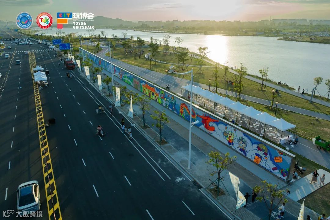 这面长达123米、高约3米的魔方积木墙,展示了澄海玩具创意产业与地方文化的深度融合。墙面上不仅有北回归线标志塔、南澳灯塔等汕头地标,还融入了红头船、英歌舞等潮汕特色文化元素,以及“超级飞侠”“喜羊羊”等知名IP角色[2]。